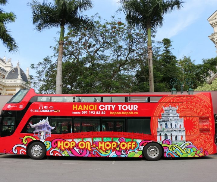 One around HaNoi city tours departure operation time at 08h00 - 20h30, audio 8 languages. Valid 60 mins. Free wifi.